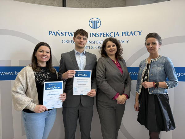 Laureaci otrzymali dyplomy oraz nagrody rzeczowe ufundowane przez Okręgowy Inspektorat Pracy w Bydgoszczy, wręczone przez p.o. Okręgowego Inspektora Pracy.