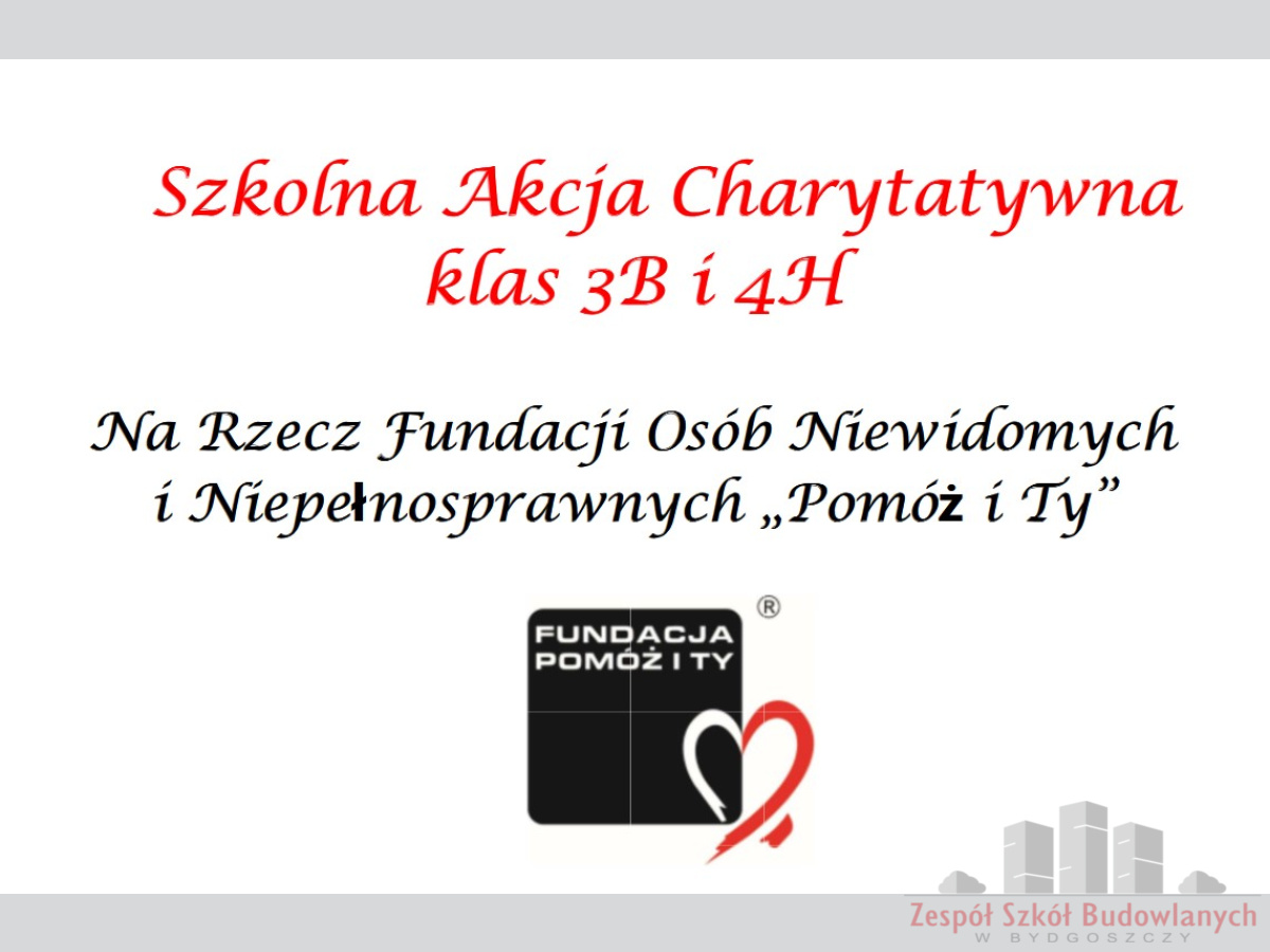 We wtorek 23 września uczniowie klas 3B i 4H wraz z wychowawczyniami przygotowali szkolną akcję charytatywną na rzecz Fundacji Osób Niewidomych i Niepełnosprawnych „Pomóż i Ty”.