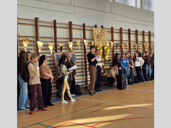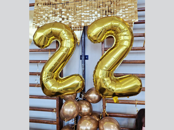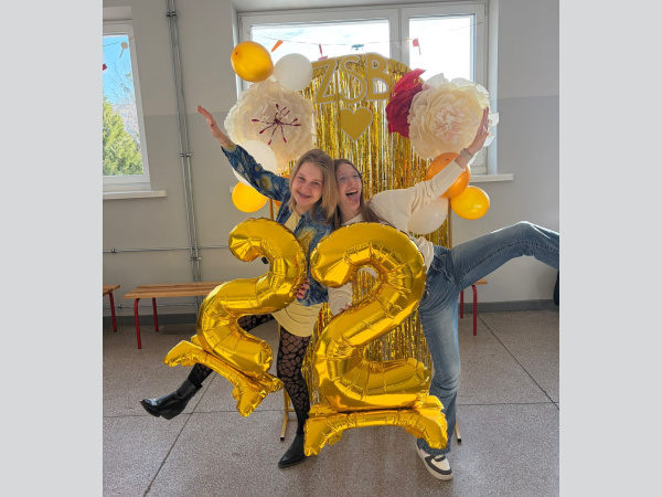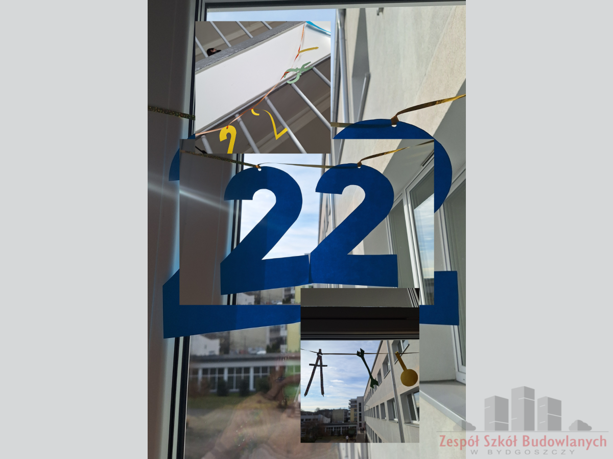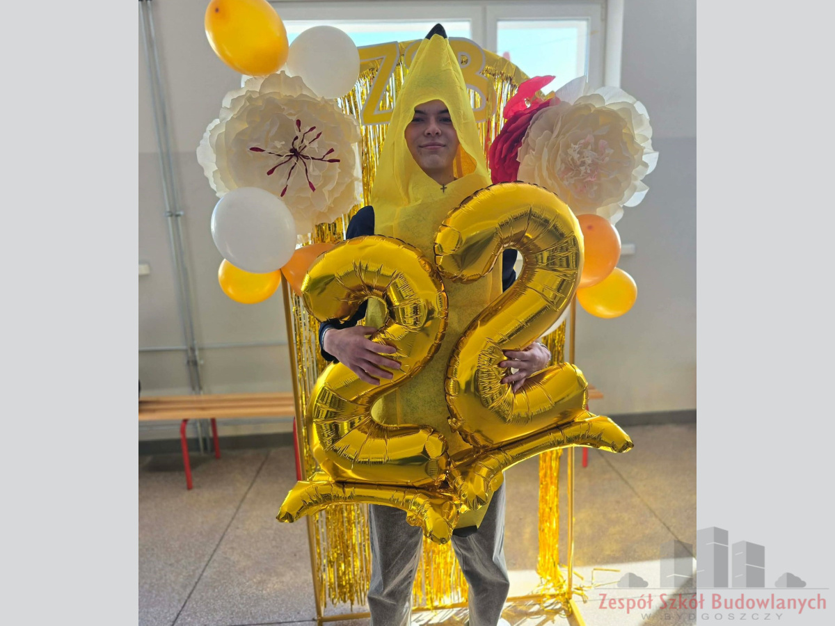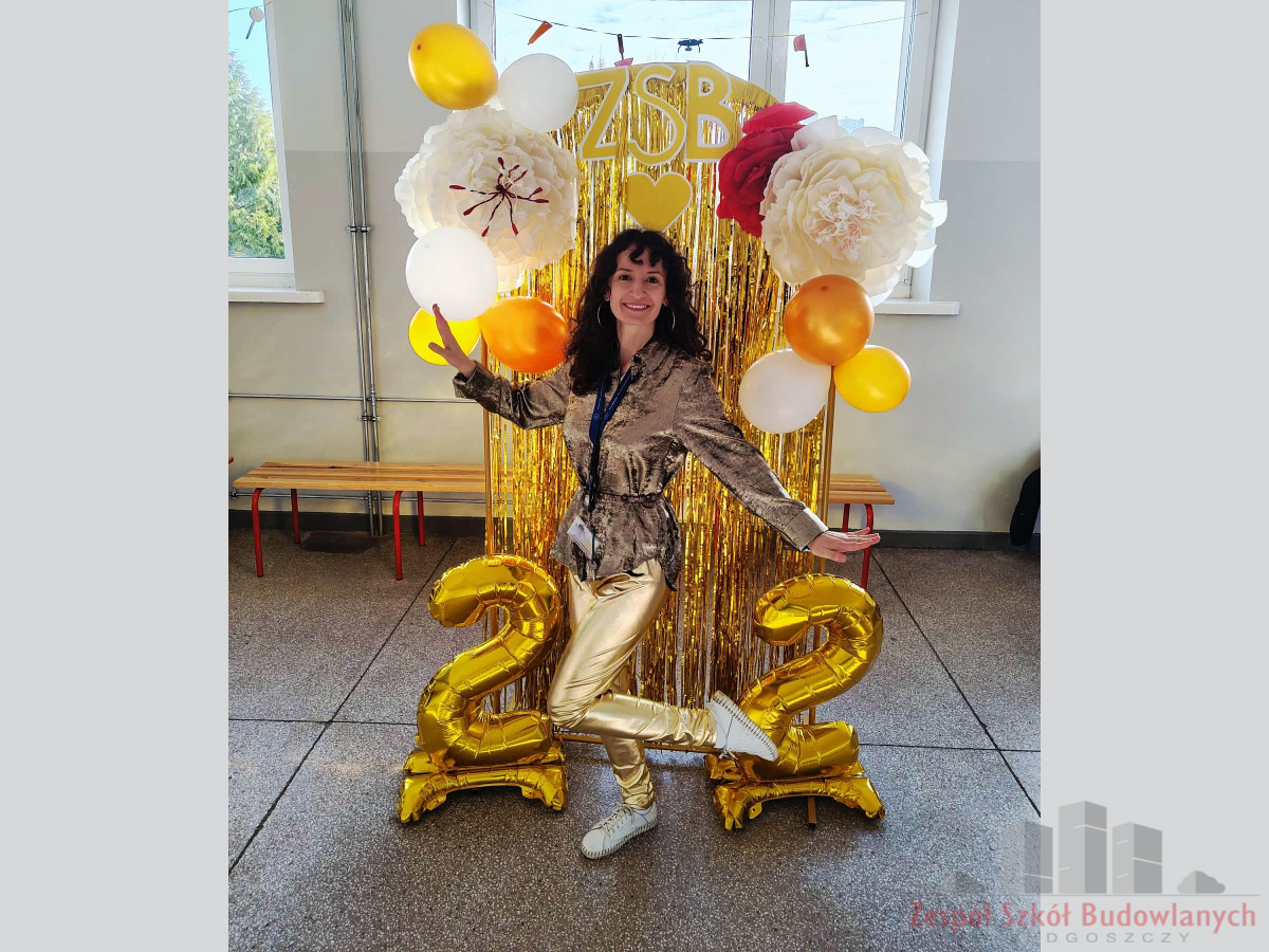 Z tej okazji Samorząd Uczniowski zorganizował wiele atrakcji i konkursów. Po uroczystym otwarciu uroczystości przez Panią Dyrektor Magdalenę Popielewską na sali gimnastycznej rozpoczęto huczne świętowanie. Uczniowie mogli wziąć udział w kreatywnym konkursie plastycznym polegającym na twórczym przedstawieniu liczby dwa. Nie zabrakło emocji podczas konkursu zbierania na czas złotych tarcz. Wiele pozytywnych wrażeń zarówno uczestnikom, jak i kibicom dostarczyły wyścigi rzędów na sali gimnastycznej. Uczniowie i nauczyciele mieli tego dnia doskonałą okazję, żeby zaprezentować swój talent muzyczny na konkursie karaoke, który został przeprowadzony przez szkolny zespół wokalny „Jerzynki”. Odbył się również konkurs szacowania wymiarów przedmiotów budowlanych. Przez drona został sfotografowany złoty napis „ZSB 22” utworzony przez uczniów na terenie rekreacyjnym. Nie mogło zabraknąć belgijki, którą uczniowie zatańczyli wspólnie podczas przerwy. Nauczyciele oraz uczniowie mogli robić sobie zdjęcia na tle złotej fotościanki, która została specjalnie przygotowana na tą uroczystość. Wiele klas przygotowało plakaty, pt. „22 powody, dla których jesteśmy w TOP 22”, które ukazały atuty i wyjątkowość naszej szkoły. Pod koniec świętowania cała społeczność szkolna mogła częstować się czekoladowymi babeczkami.