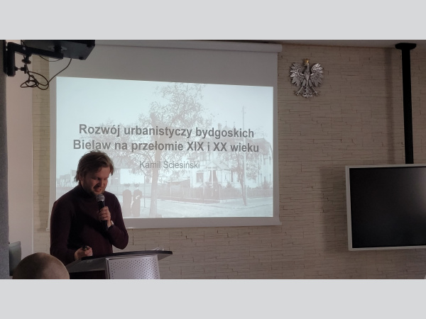 Z kolei Pan Kamil Ściesiński z Muzeum Okręgowego im. Leona Wyczółkowskiego w Bydgoszczy zaprezentował procesy urbanistyczne zachodzące na obszarze bydgoskich Bielaw na przełomie XIX i XX wieku, ukazując, w jaki sposób układ przestrzenny miasta stanowi zapis przemian społecznych, gospodarczych i technologicznych epoki.