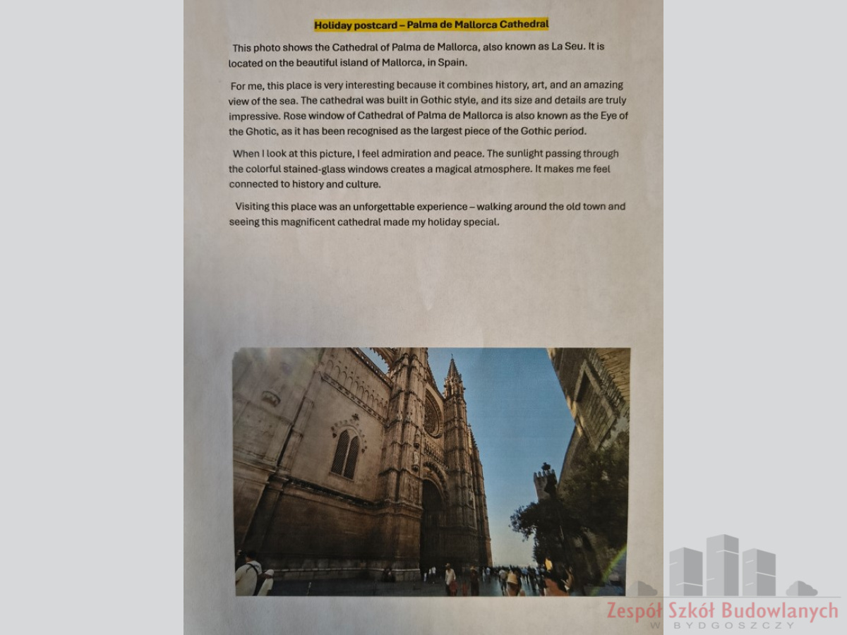 2 października rozstrzygnięty został konkurs na wakacyjną pocztówkę ze wspomnieniami. Był to konkurs języka angielskiego, w którym uczniowie mieli w barwny i ciekawy sposób opisać jedno z miejsc, które odwiedzili w wakacje i które zostało im w pamięci, jako coś, co warto wspominać i polecać innym do zwiedzenia.
