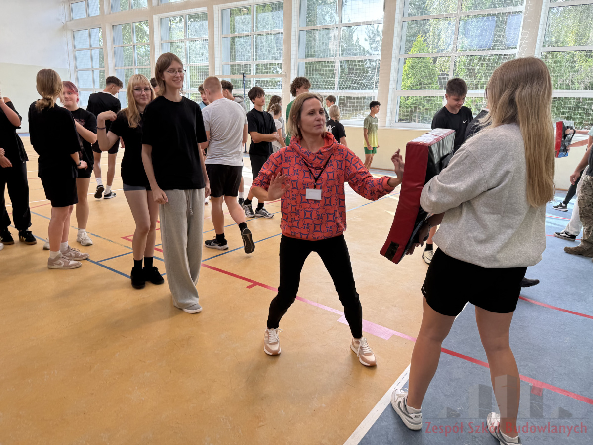 Dnia 17 września z okazji Narodowego Dnia Sportu nasza społeczność szkolna wzięła udział w wyjątkowych wydarzeniach promujących aktywny styl życia i zdrowe nawyki. Program był różnorodny i dostosowany do osób w każdym wieku. Pod okiem doświadczonych instruktorów odbyły się zajęcia z samoobrony. Uczniowie poznali podstawowe techniki, ucząc się skutecznych reakcji w sytuacji zagrożenia, budując poczucie własnej wartości i kontroli nad ciałem. W spokojnej atmosferze odbyły się zajęcia jogi, które pozwoliły uczestnikom na chwilę wyciszenia, rozciągnięcia mięśni i poprawę koncentracji. To doskonały sposób na regenerację i zadbanie o równowagę psychiczną. Specjalista ds. dietetyki podzielił się praktycznymi wskazówkami dotyczącymi zbilansowanej diety, wpływu jedzenia na samopoczucie oraz sposobów na wprowadzenie zmian w codziennym menu. Podczas przerw można było skosztować zdrowych domowych wypieków przygotowanych przez uczniów klasy 2C i szkolne koło wolontariatu.
