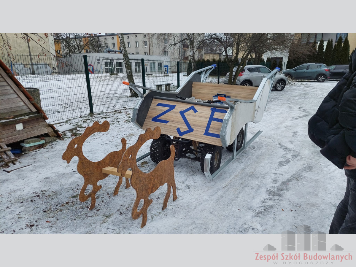 Sanie zostały zbudowane na podwoziu od quada, z dbałością o detale i funkcjonalność — co więcej, dało się je również odpalić, co zrobiło duże wrażenie na obserwujących. Ponieważ emocji było mało jak na jeden przejazd, wykonaliśmy dwa przejazdy, a za każdym razem w rolę „reniferów” wcielały się inne osoby.