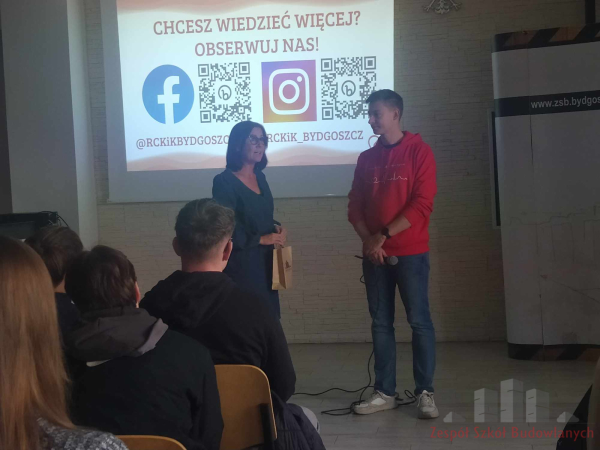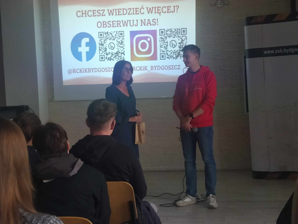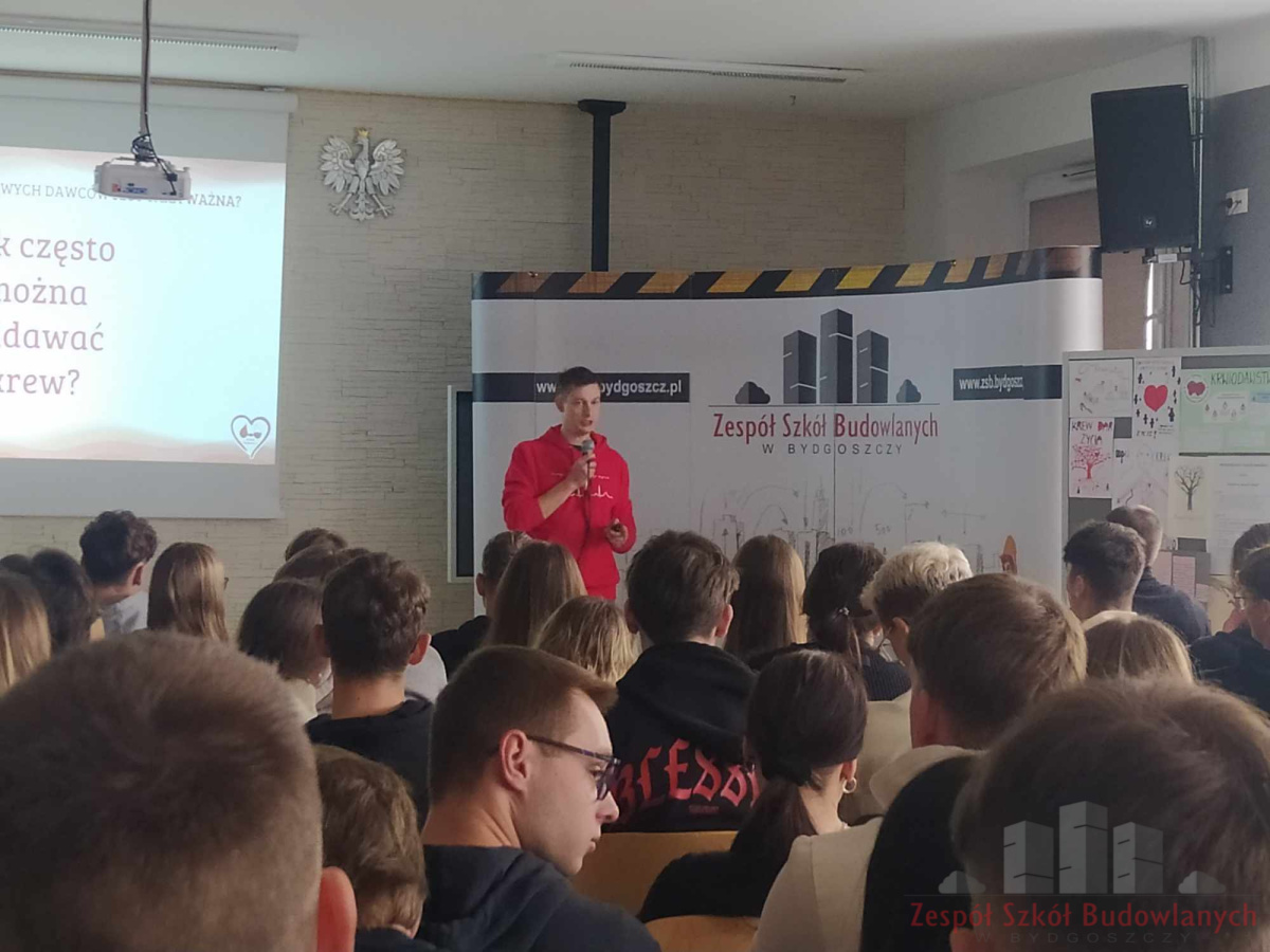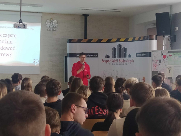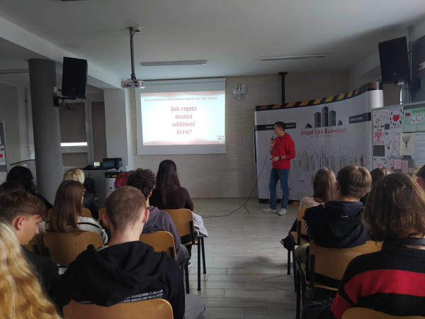 Akcja poboru krwi była poprzedzona prelekcją, na której to uczniowie klas IV i V uzyskali niezbędne informacje dotyczące oddawania krwi. Prelekcję przeprowadził pan Krzysztof Laks z działu promocji RCKiK w Bydgoszczy.
