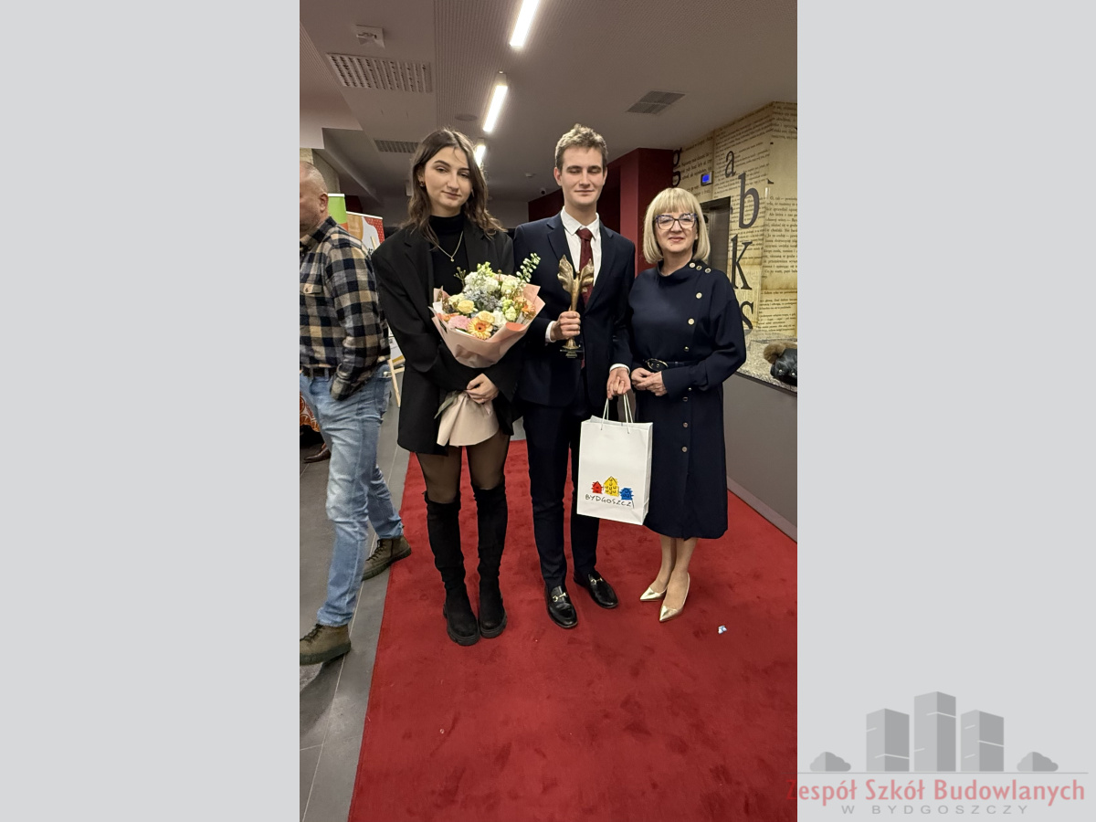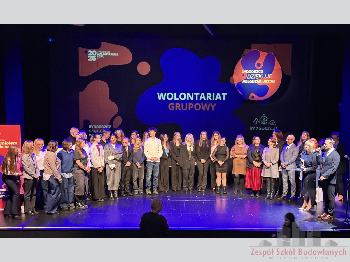 Podczas ceremonii podziękowania otrzymali uczniowie Zespołu Szkół Budowlanych reprezentujący wszystkich wolontariuszy działających w Szkolnym Kole Wolontariatu wraz z opiekunem grupy.