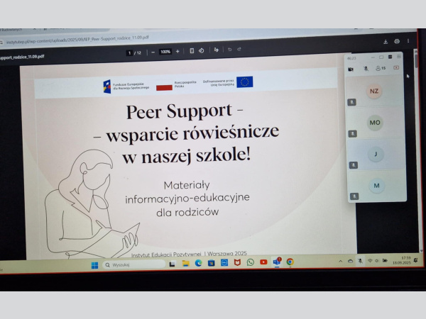 Projekt „Wsparcie rówieśnicze w zakresie zdrowia psychicznego młodzieży (peer support)” w ramach programu Fundusze Europejskie dla Rozwoju Społecznego 2021-2027 (FERS), Priorytet FERS.05 Innowacje społeczne, Działanie 05.01 Innowacje społeczne, w partnerstwie z Ministerstwem Edukacji Narodowej i Fundacją „Instytut Edukacji Pozytywnej”