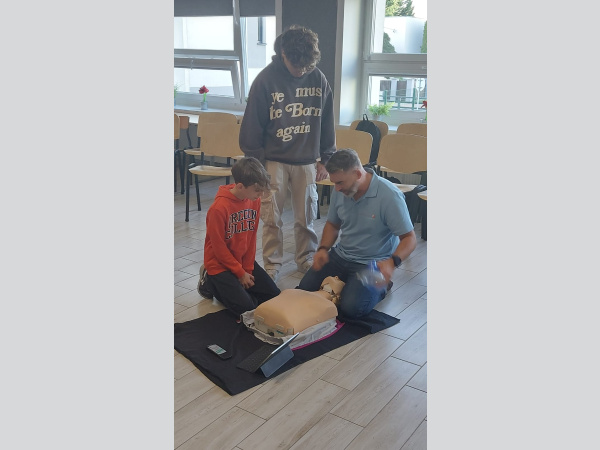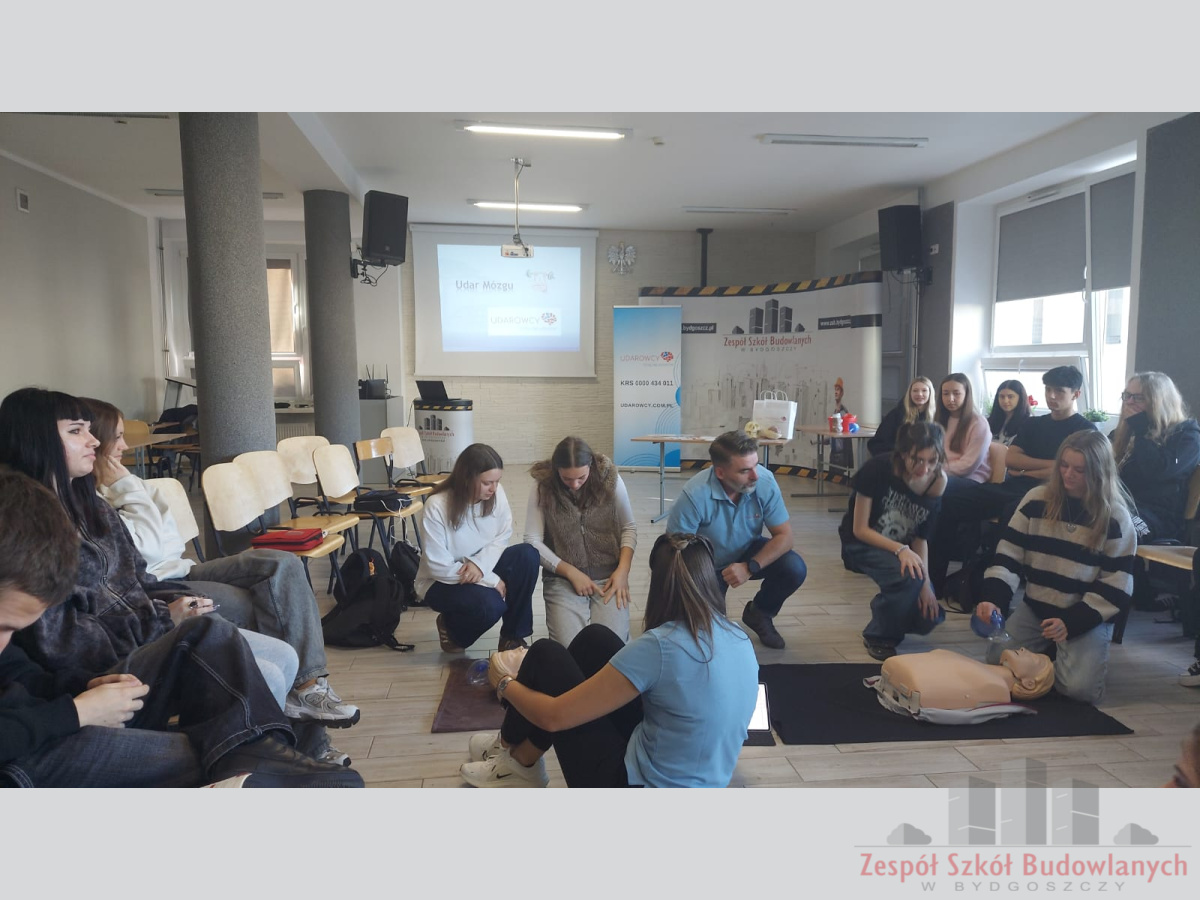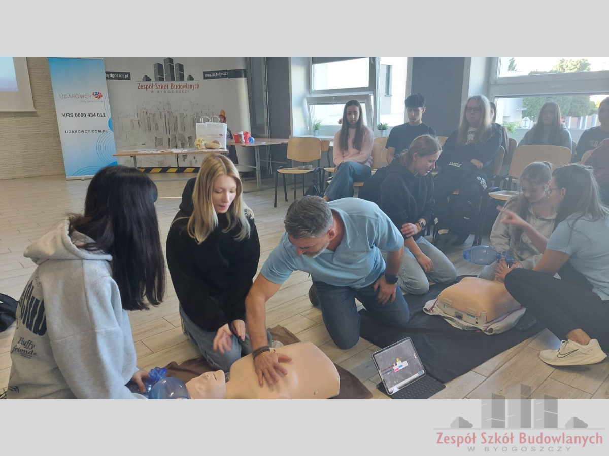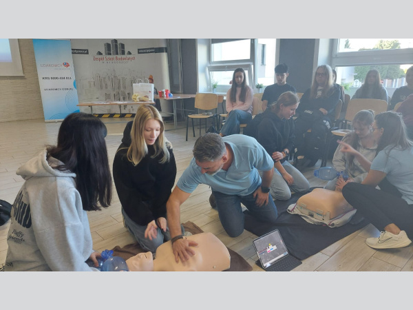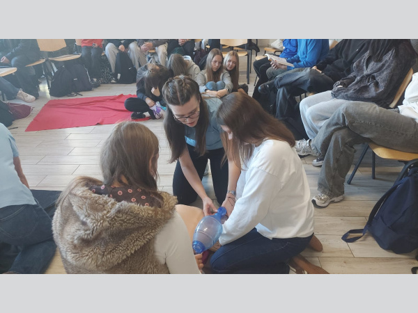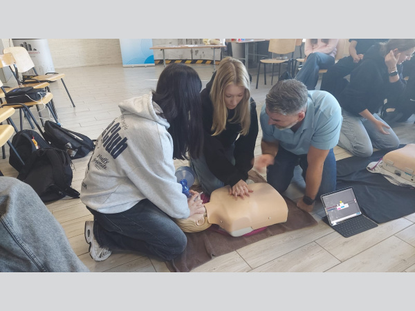 Podczas pełnych zaangażowania warsztatów młodzież dowiedziała się, jak rozpoznać objawy udaru i jak ważne jest szybkie działanie w sytuacji zagrożenia życia. Uczniowie ćwiczyli też resuscytację krążeniowo–oddechową i obsługę AED, ucząc się, jak nie bać się pomagać.