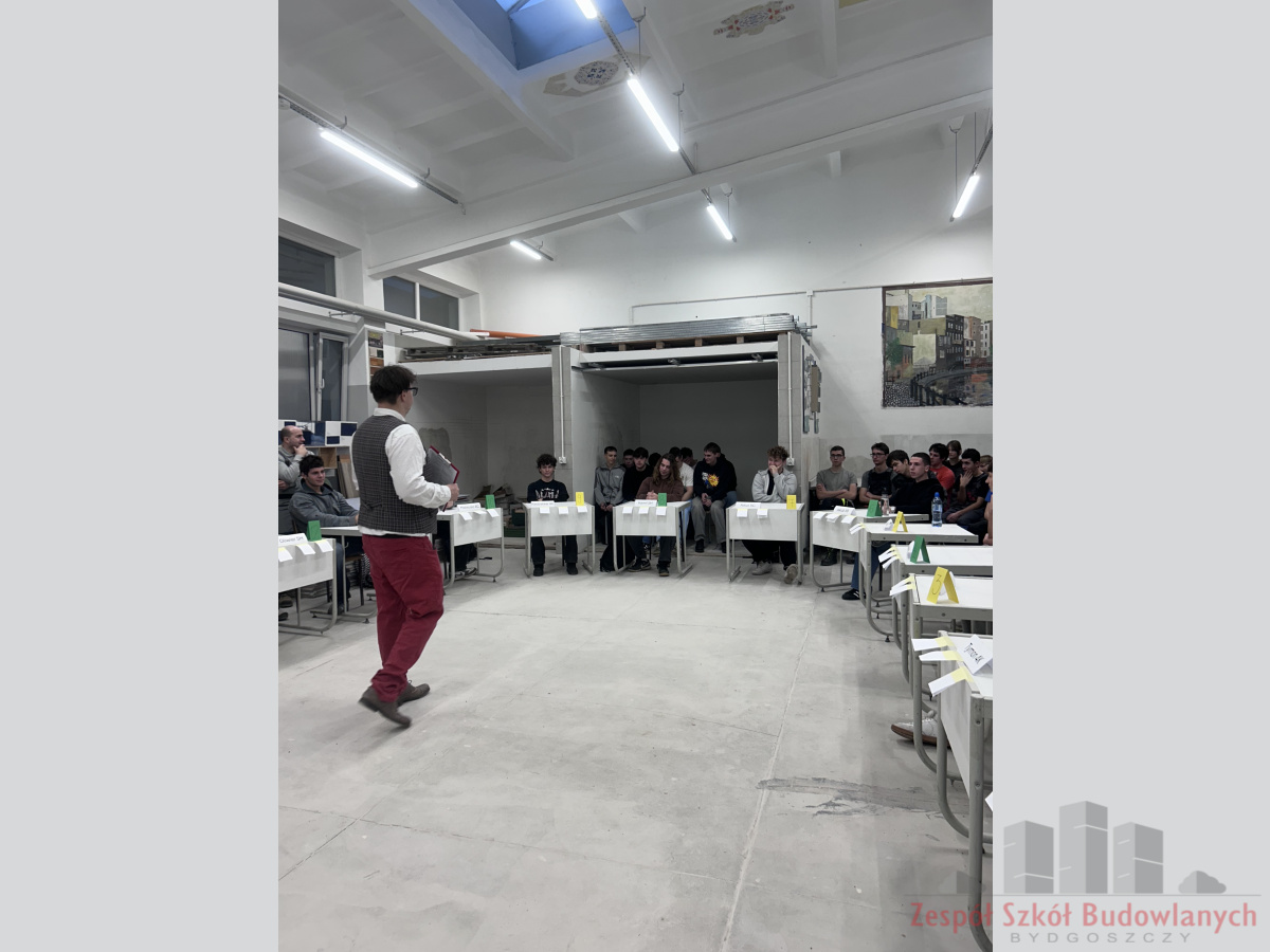 11 grudnia nasza szkoła zamieniła się w prawdziwe studio telewizyjne! Odbył się konkurs w formie teleturnieju „1 z 10”, w którym uczestnicy sprawdzali swoją wiedzę z organizacji robót budowlanych.