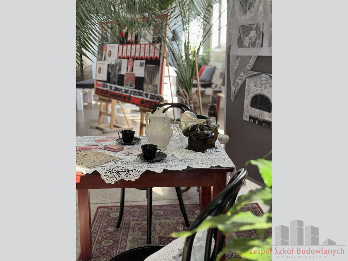 - Kawiarenka patriotyczna i kącik retro – przygotowane przez klasę V B, miejsce spotkań i rozmów o historii.