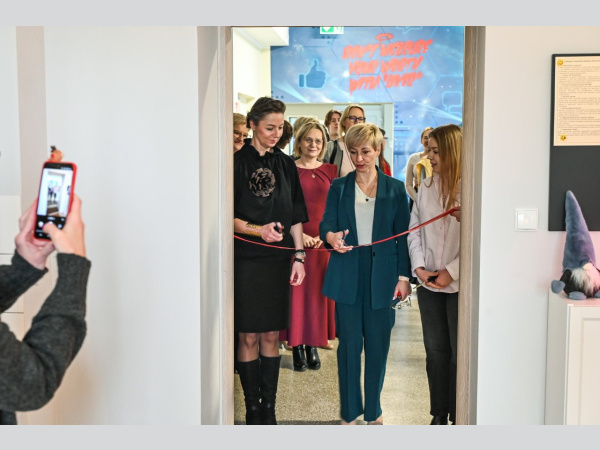 Pierwszym punktem spotkania było otwarcie „Pokoju Mocy”- przestrzeni, która została zaprojektowana z myślą o komfortowym i przyjaznym otoczeniu. Nie przypomina ona standardowej sali szkolnej. Znajdują się tam przytulne fotele, regał z książkami, rośliny i delikatne oświetlenie — wszystko po to, aby młodzi ludzie mogli zatrzymać się, wysłuchać, porozmawiać i poczuć się zrozumiani. Realizacja tej inicjatywy była możliwa dzięki osobistemu zaangażowaniu koordynatorek szkolnych — Pani wicedyrektor Doroty Czechowskiej oraz Pani psycholog dr Kingi Sobieralskiej-Michalak. To właśnie pod ich przewodnictwem nasza szkoła dołączyła do grona placówek uczestniczących w pilotażowym programie, znaleźliśmy się wśród 200 wybranych szkół ponadpodstawowych spośród ponad 400 zgłoszonych z całej Polski, zajmując wysoką pozycję w rankingu