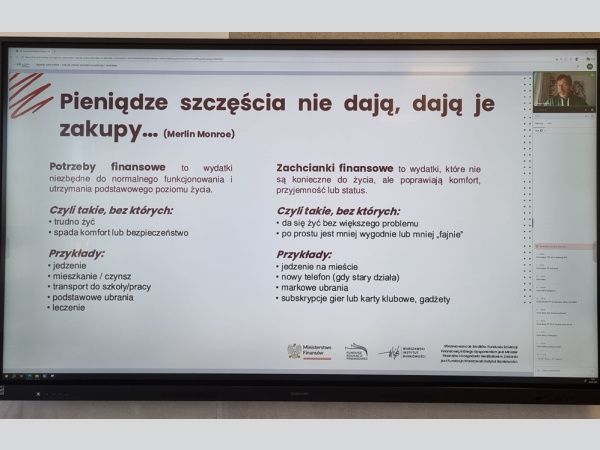Tematem zajęć była nauka świadomego zarządzania pieniędzmi. Podczas lekcji uczestnicy poznali pojęcie budżetu konsumenckiego oraz dowiedzieli się, jak identyfikować źródła dochodów i analizować wydatki — zarówno obowiązkowe, jak i związane z przyjemnościami.