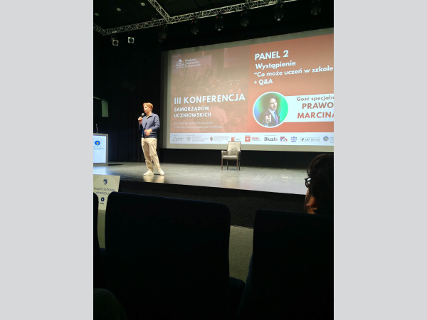 Gościem specjalnym konferencji był vloger „Prawo.Marcina”, który w przystępny sposób przybliżył zagadnienia związane z prawami ucznia. Ważnym elementem wydarzenia był również konkurs na grant uczniowski, który stanowił okazję do zaprezentowania własnych pomysłów i inicjatyw.