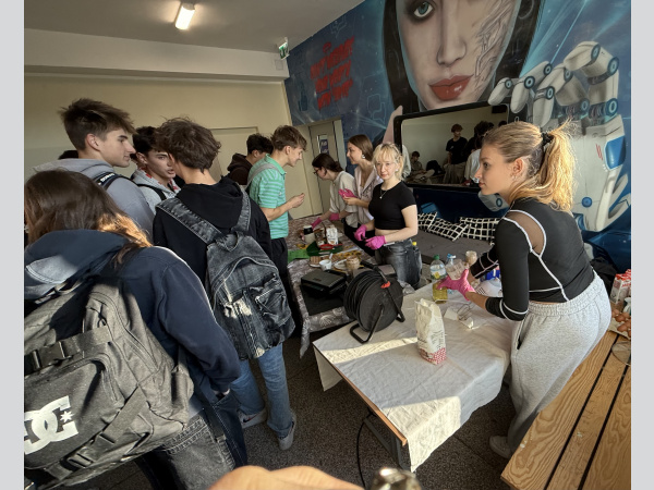 W miniony poniedziałek szkolny wolontariat zorganizował akcję charytatywną – kawiarenkę z goframi, która przyciągnęła wielu uczniów. Aromat świeżo pieczonych gofrów unosił się w powietrzu przez cały dzień, a każdy zakupiony przysmak miał jeden cel: pomoc zwierzętom ze schroniska. Dzięki zaangażowaniu wolontariuszy i społeczności szkolnej zebraną kwotę przeznaczymy na zakup karmy i środków czystości.