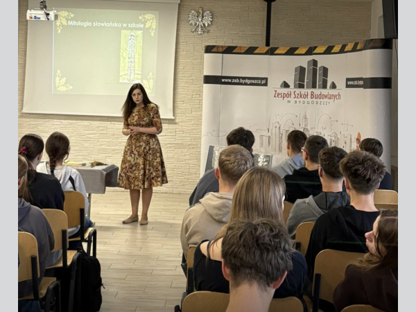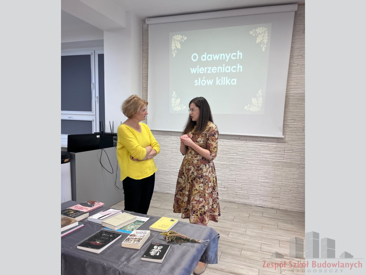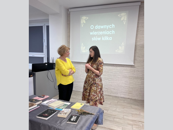 Z tej okazji zorganizowaliśmy spotkanie z panią Martą Lazarek, doktorantką literaturoznawstwa na Uniwersytecie Kazimierza Wielkiego. Pani Lazarek, specjalizująca się w wierzeniach dawnych Słowian, szczególnie w ich obecności w literaturze dziecięcej, podzieliła się swoją wiedzą i pasją do tematu. W trakcie spotkania opowiadała o tradycjach i obrzędach Słowian, o dawnych wyobrażeniach o świecie oraz o tym, jak te wierzenia przenikały do kultury, literatury i języka.