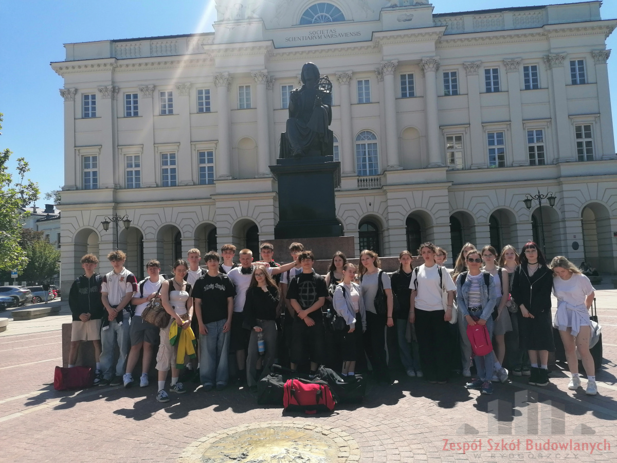 W dniach 26.05 – 27.05.2025 klasa 2 H odwiedziła Warszawę. Pierwszego dnia spacerowaliśmy po Starym Mieście podziwiając piękne kamienice i architekturę miasta. Zwiedziliśmy Muzeum Polin, które dostarczyło nam wzruszających chwil do refleksji. Kolejno udaliśmy się na spacer po Bulwarach Wiślanych i przejazd metrem do Stadionu Narodowego. Nie zabrakło wizyty w Łazienkach Królewskich, gdzie powitały nas lis i paw. Przyroda wiosną zachwyca. Kolejnego dnia, przedpołudnie spędziliśmy w Muzeum Narodowym, następnie przenieśliśmy się do świata iluzji. To była edukacyjna i pełna wrażeń wyprawa klasowa. Pogoda nam sprzyjała, stolica ma czym zachwycać!