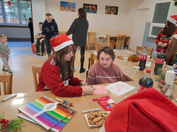 Uczniowie przekazali wychowankom placówki zakupione przez wszystkie klasy Budowlanki prezenty. Wspólne spotkanie rozpoczęliśmy odśwpiewaniem kolędy, a następnie pojawił się święty Mikołaj, który uświetnił naszą wizytę i wywołał uśmiech na twarzach dzieci. Później przyszła pora na rozpakowanie upominków i wszyscy wspólnie uczestniczyliśmy w zajęciach plastycznych. W ten sposób mogliśmy poczuć magiczną atmosferę Świąt Bożego Narodzenia i podzielić się radością z innymi.