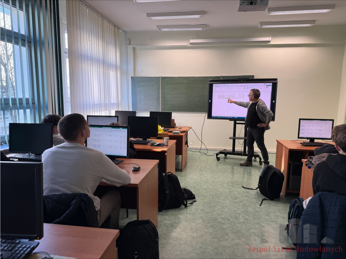 23.01.2026 r. kolejna grupa odbyła zajęcia z opracowania mapy do celów projektowych, które poprowadził mgr inż. Dariusz Startek już w pracowni komputerowej w Zespole Szkół Budowlanych.