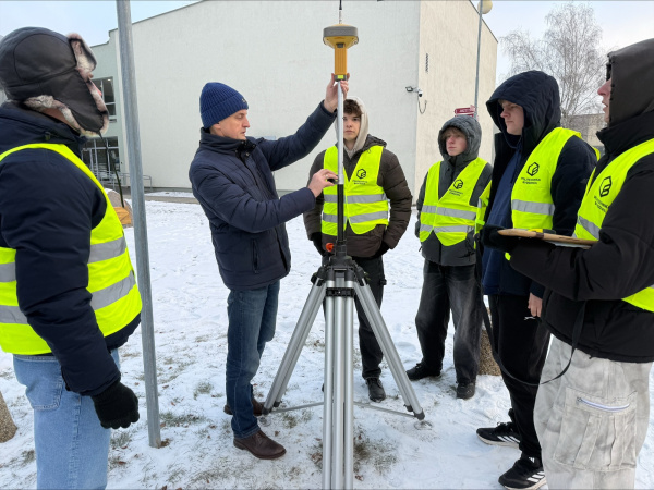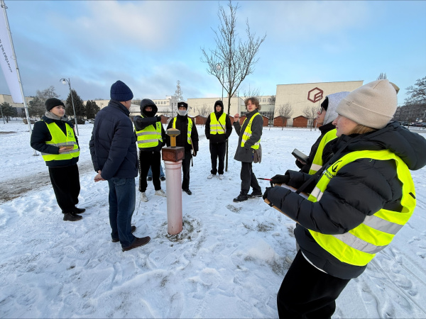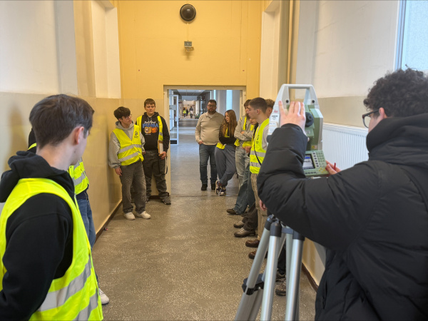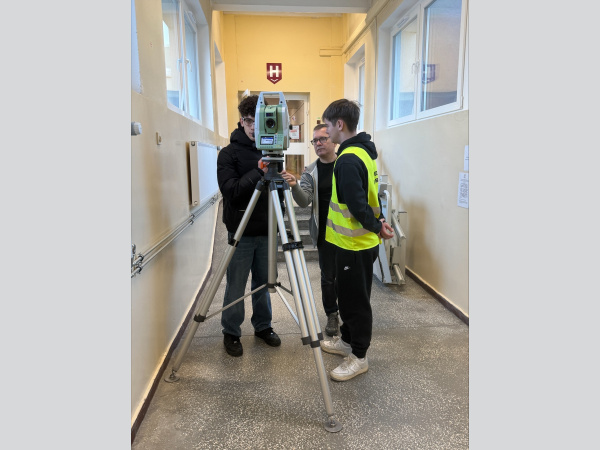 20.01.2026 r. część klasy miała możliwość badania przemieszczeń punktów łącznika z wykorzystaniem precyzyjnych pomiarów niwelacyjnych z dr inż. Jacekiem Sztubeckim