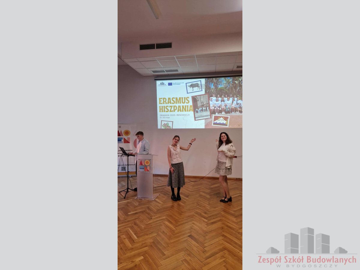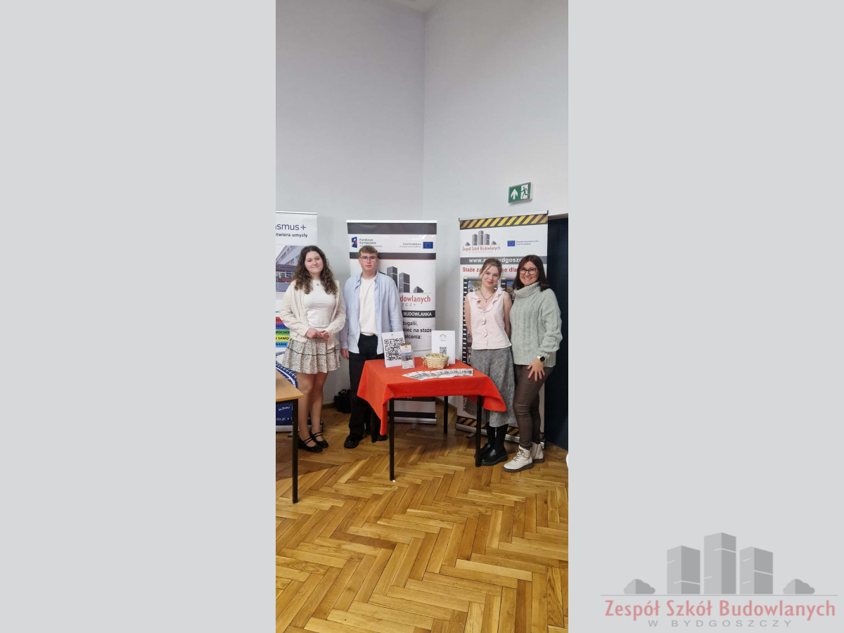 27 listopada przedstawicielki Zespołu Szkół Budowlanych w Bydgoszczy – szkolna koordynatorka projektów Erasmus+ wraz z trojgiem uczniów – wzięli udział w konferencji „Zawodowo bez granic – siła projektów Erasmus+ w edukacji VET”, zorganizowanej przez Miejski Ośrodek Edukacji Nauczycieli w Bydgoszczy.