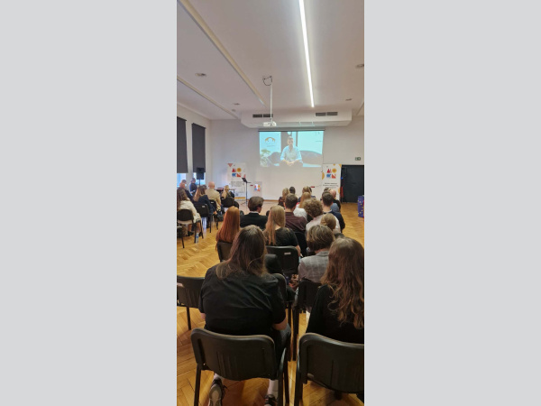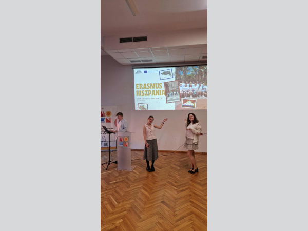 Szczególnym momentem konferencji był występ naszych uczennic – Dominiki i Marty, które zaprezentowały przygotowany przez siebie film ukazujący doświadczenia młodzieży ZSB podczas staży zawodowych w Granadzie realizowanych w ramach programu Erasmus+. Ich prezentacja spotkała się z dużym zainteresowaniem uczestników i stała się inspiracją dla innych szkół wdrażających podobne działania.