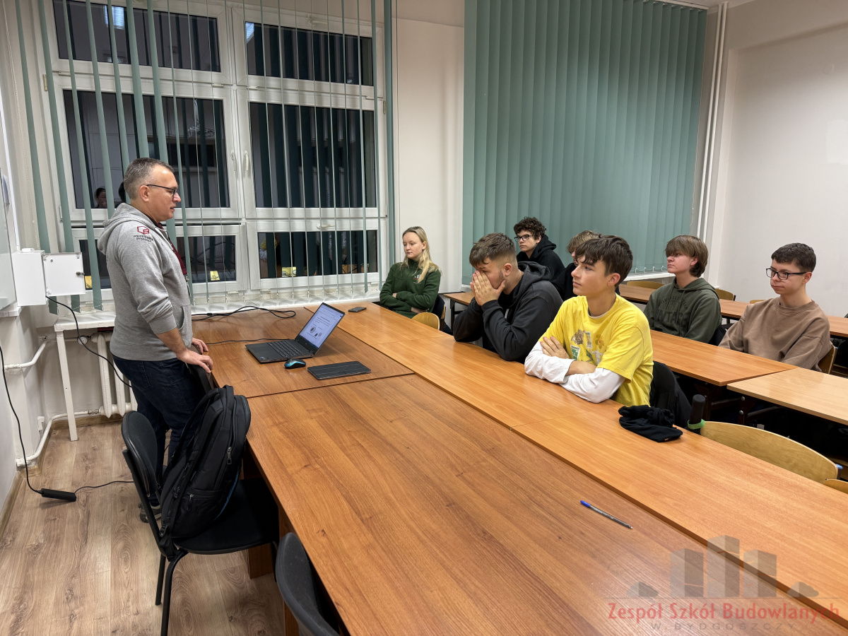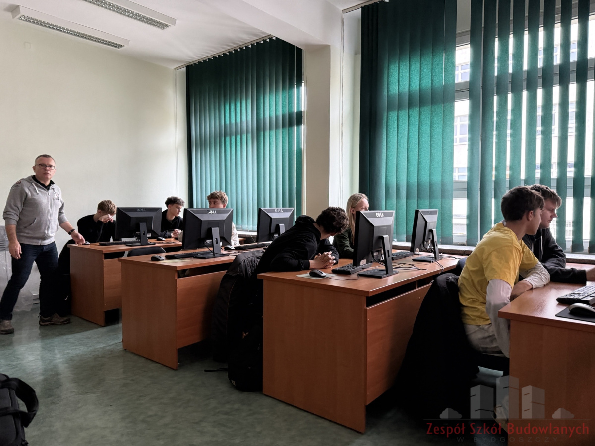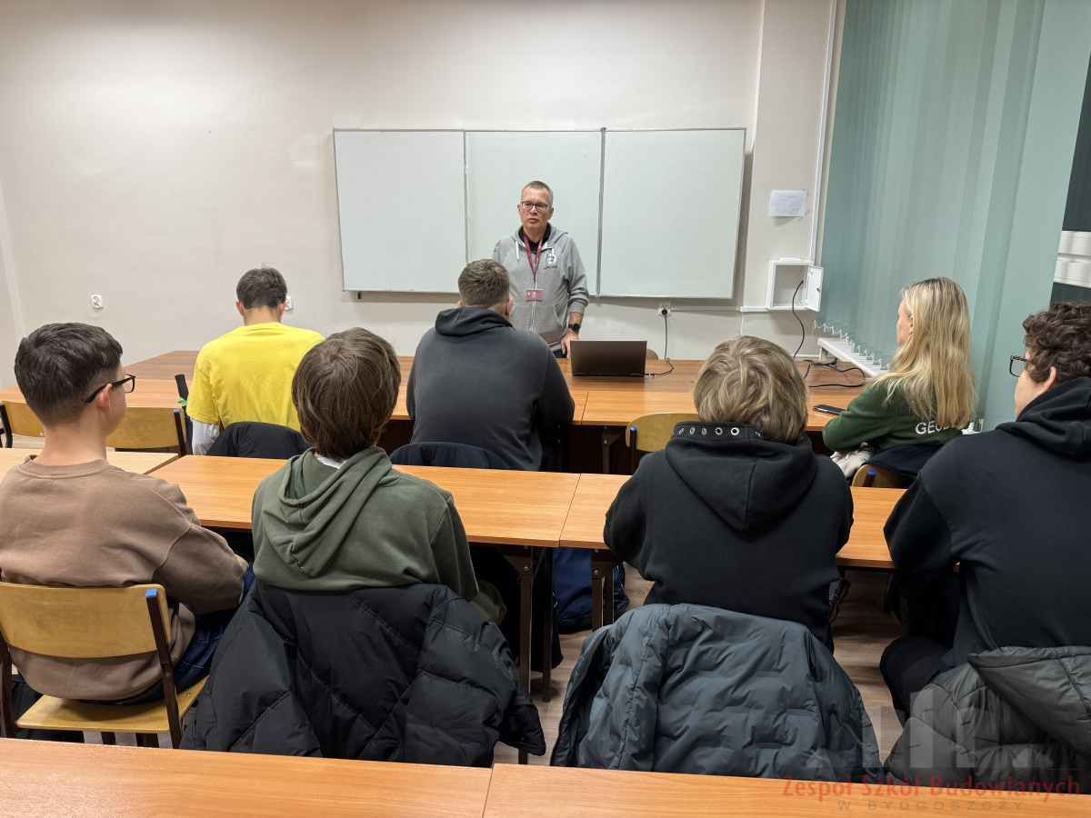 Uczniowie klasy 3G technikum geodezyjnego w dniu 09.12.2025 wzięli udział w warsztatach zorganizowanych przez Politechnikę Bydgoską. Zajęcia poprowadził dr inż. Jacek Szubecki z Wydziału Budownictwa, Architektury i Inżynierii Środowiska.