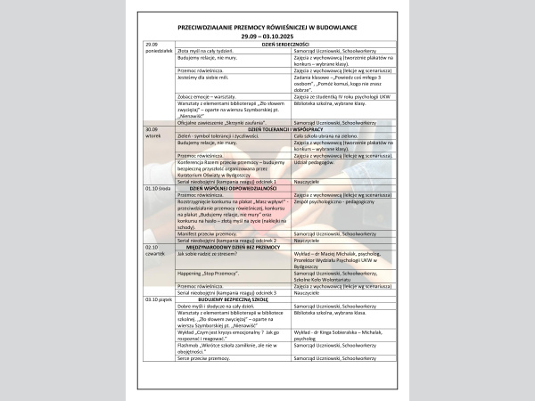 Czytaj więcej!„Tydzień o Przeciwdziałaniu Przemocy Rówieśniczej”.