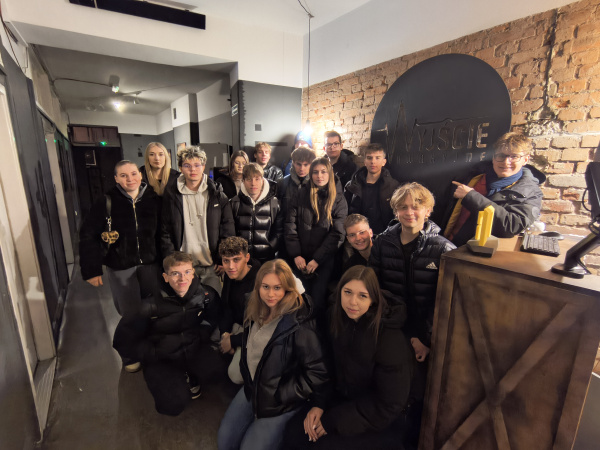 W escape roomie WYJŚCIE AWARYJNE, podzieleni na pięć grup, uczniowie zmierzyli się z zagadkami Legendy Miecza, Nautilusa: Podmorskiej Przygody, Cieni Piramid, Operacji: Metro i Morskich Opowieści.