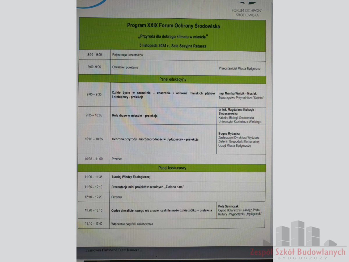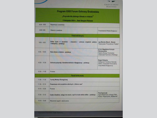5 listopada uczniowie naszej szkoły brali udział w kolejnej edycji Forum Ochrony Środowiska organizowanego przez Wydział Ochrony Środowiska Urzędu Miasta Bydgoszcz.