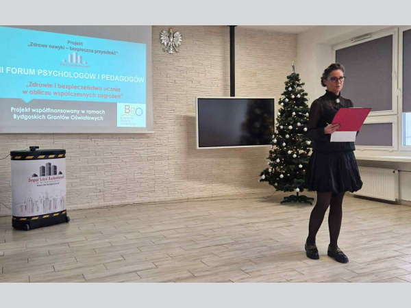 12.12.2025 odbyło się w naszej szkole VII Forum Psychologów i Pedagogów zorganizowane przez zespół psychologiczno – pedagogiczny: Panią pedagog Martę Gruszkę, Panią Elżbietę Szerszyńską, Panią psycholog Kingę Sobieralska – Michalak. Podczas tego ważnego wydarzenia swoją wiedzą i doświadczeniem podzielili się zaproszeni prelegenci: