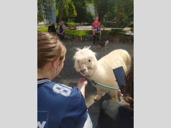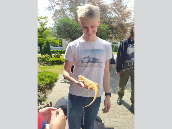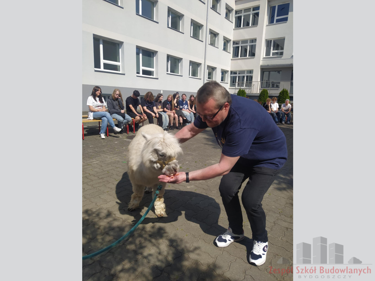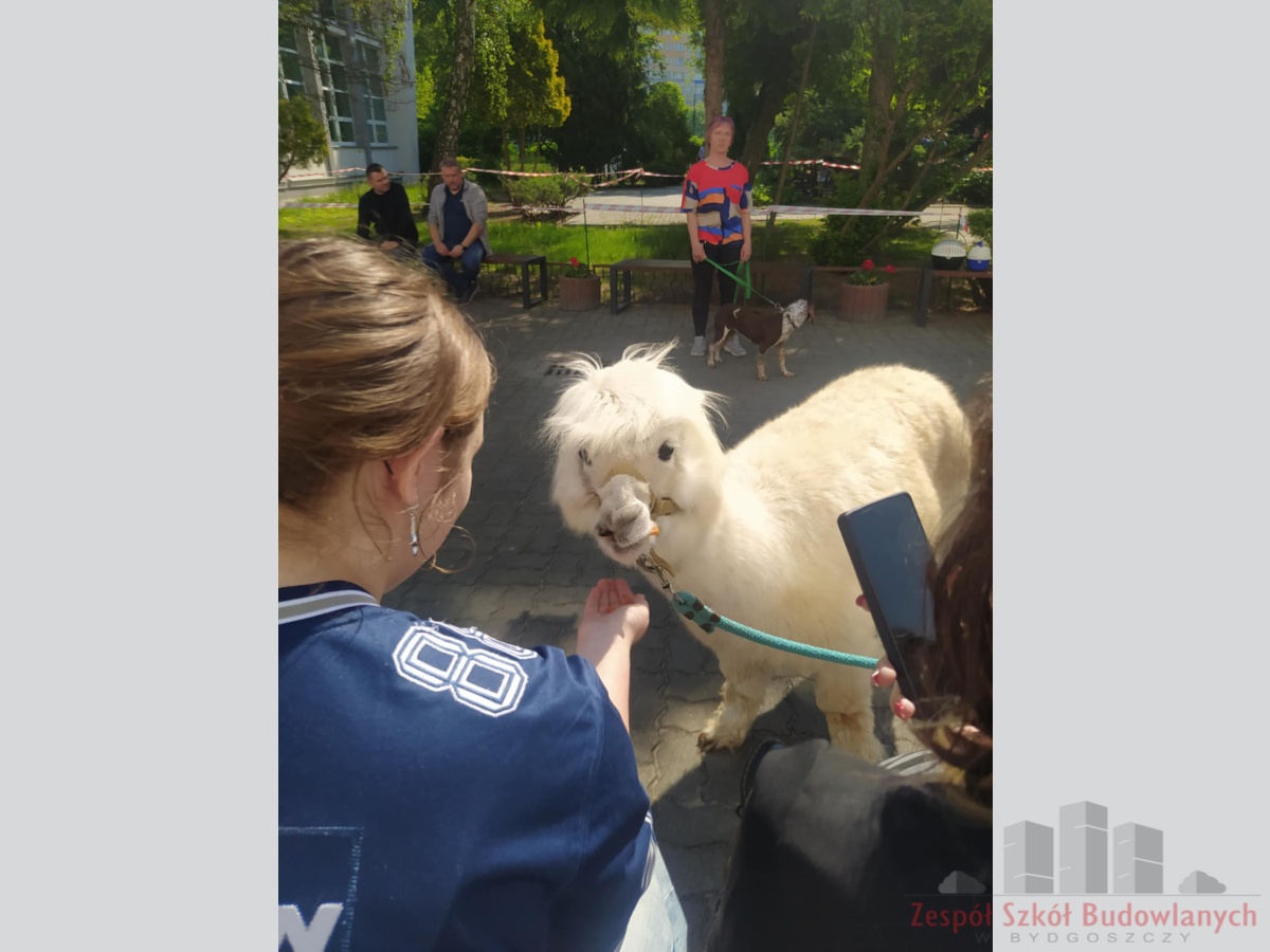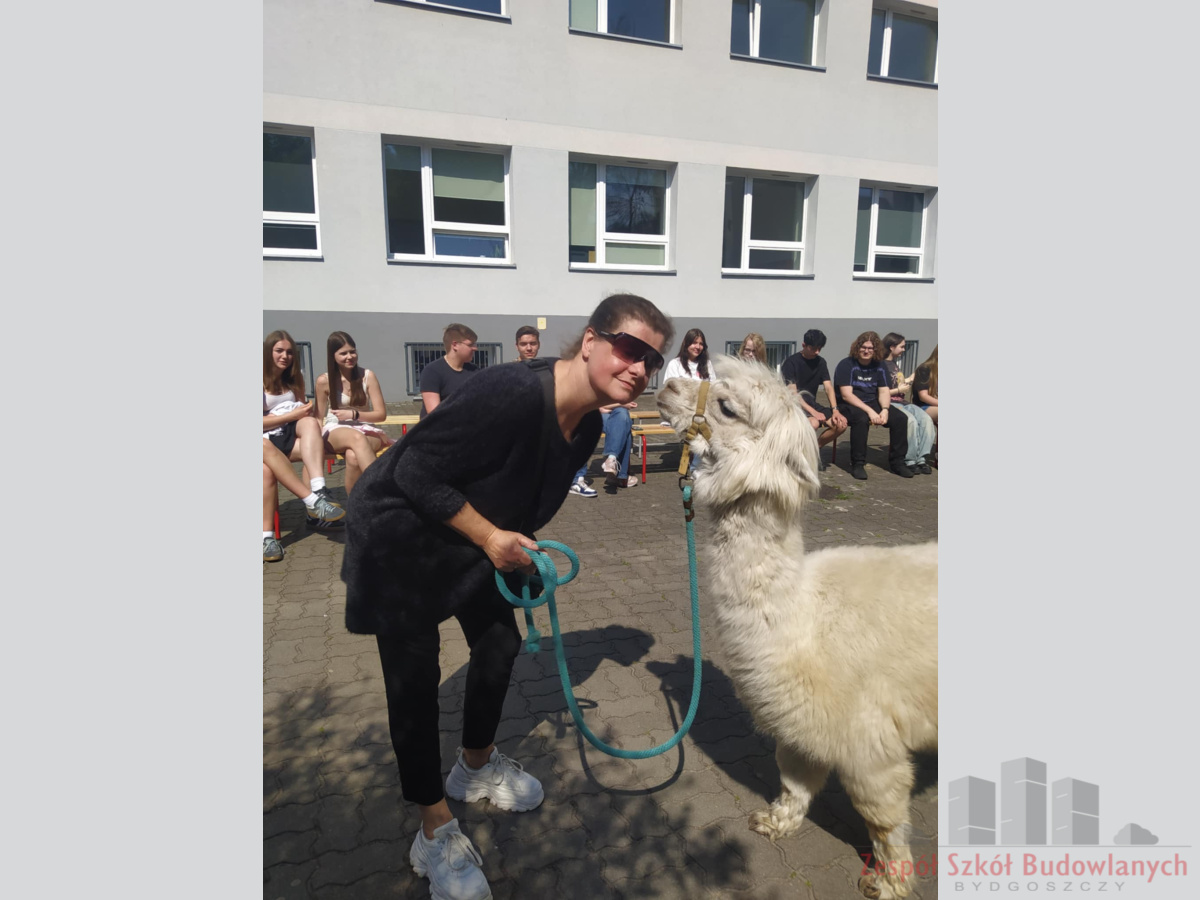 W środę uczniowie mieli możliwość bliskiego kontaktu ze zwierzętami: alpaki Lambady, psa Lajki oraz kameleona i agamy. O ich życiu opowiedziała Pani Katarzyna Strehl, zajmująca się hodowlą alpak oraz wykorzystywaniem ich w terapiach z dziećmi i dorosłymi.